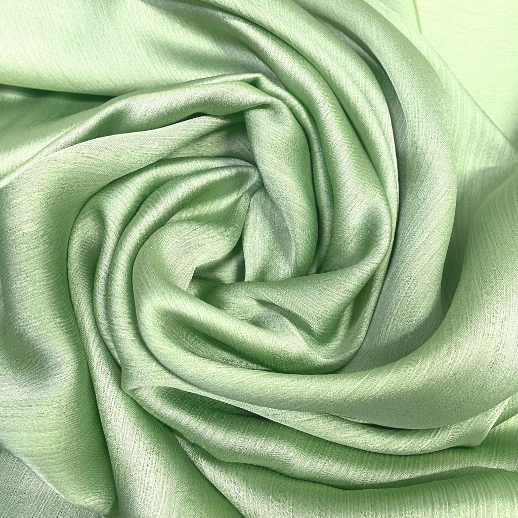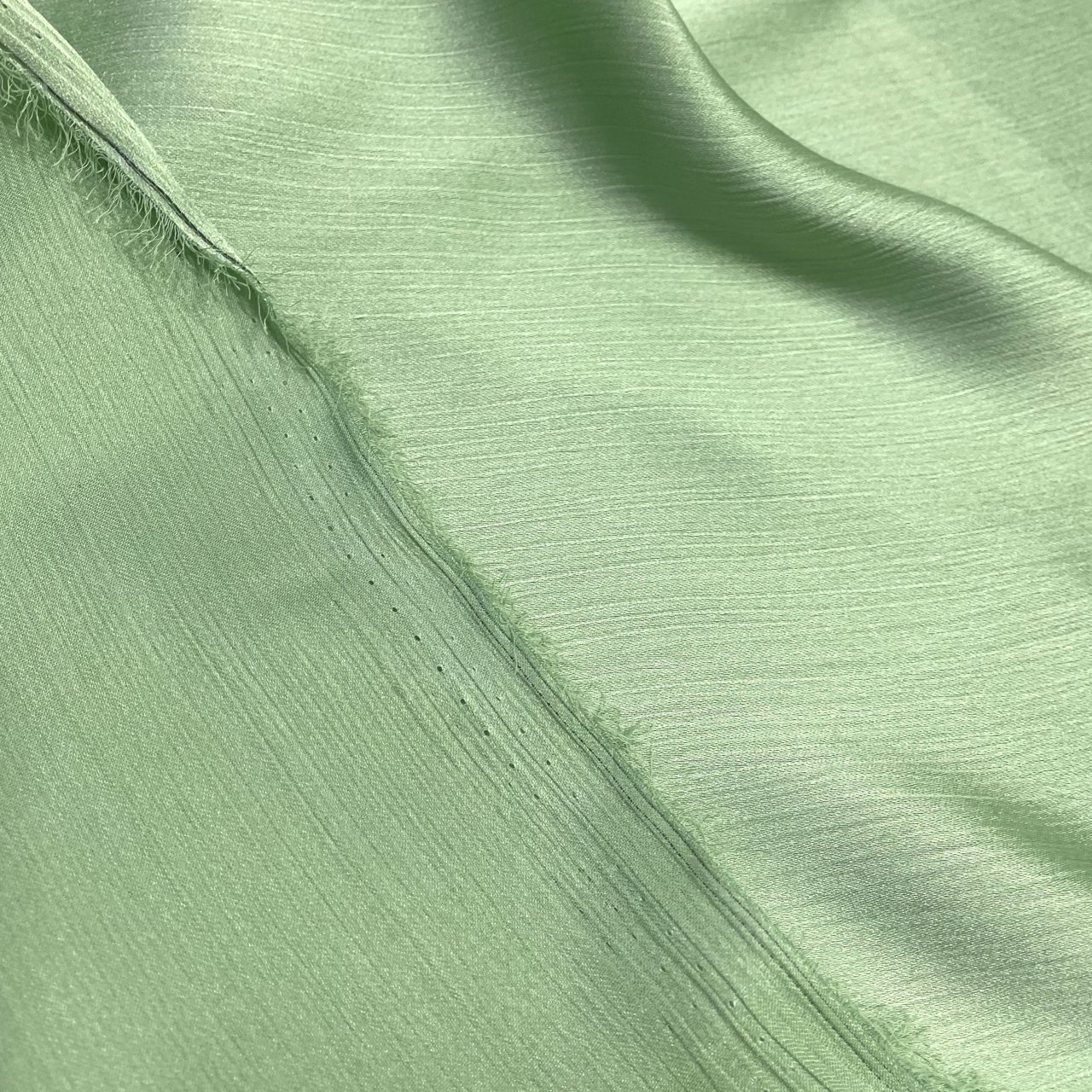 Тонкая, летящая и струящаяся ткань с перламутровой поверхностью. Полупрозрачная. Шифон технике Крэш . Крэш — жатая ткань. Её особенность — долговечные складки, морщины и заломы, которые создаются на ткани благодаря длительному воздействию пресса. Для изготовления ткани-крэш используют тонкие или синтетические материалы, поскольку именно на таких тканях заломы держатся долго и не распрямляются. Легко драпируется и собирается в плавные формы. Не смотря на свою легкость, достаточно прочная и долговечная. Используется в пошиве разнообразной легкой одежды - платья, блузки, юбки. Легко стирается и не требует глажки.