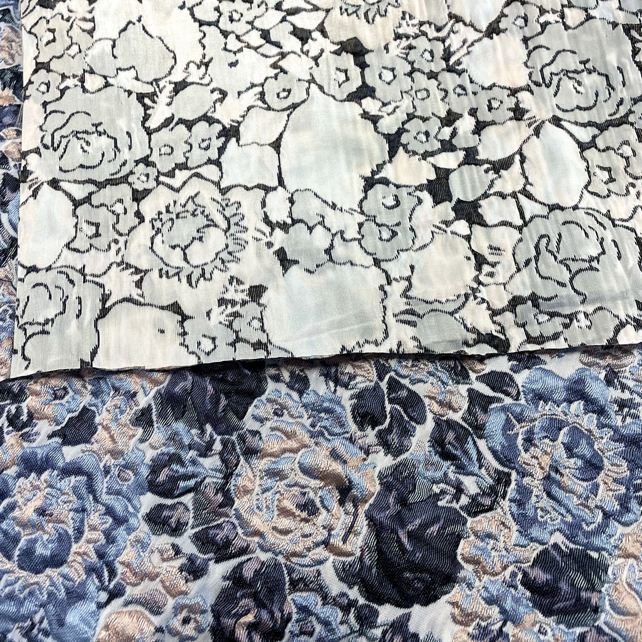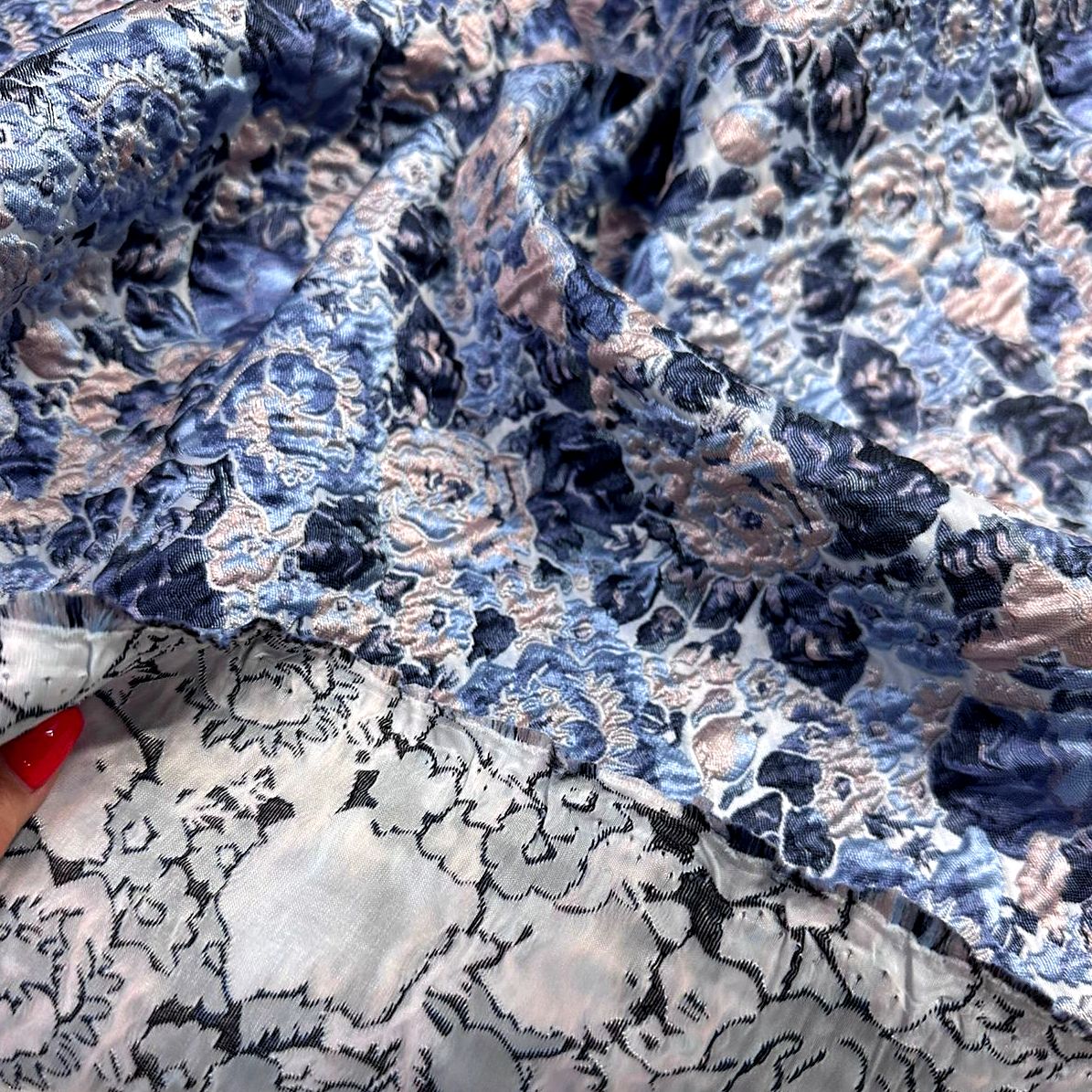 Это декоративная ткань, часто с объемным, выступающим рисунком .При изготовлении используется несколько типов волокон , что позволяет создавать сложные узоры. Несмотря на свою объемность, ткань прекрасно драпируется, выкладывается в нужный силуэт. Используется для пошива пальто, жакетов, костюмов, юбок, платья, как повседневного так и праздничного направления.