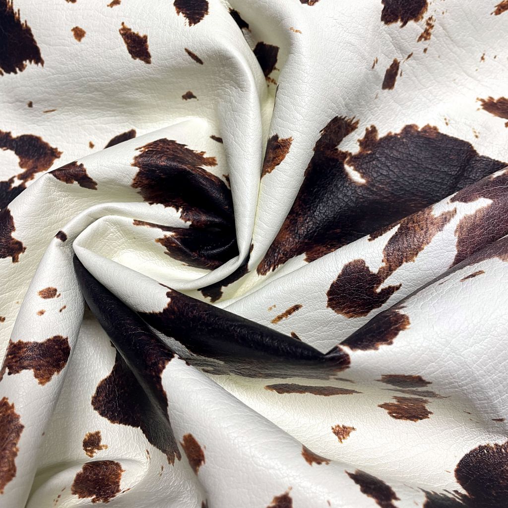 Один из самых актуальных принтов с рисунком имитирующим кожу коровы. Достаточно мягкая и приятная на ощупь. Выполнена заливным способом на основную поверхность ткани - подложки. Не тянется. Прекрасно подойдет для пошива юбок, брюк, курток и т.п. Так же как элемент декора на изделия.