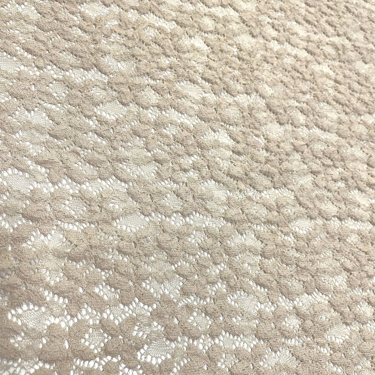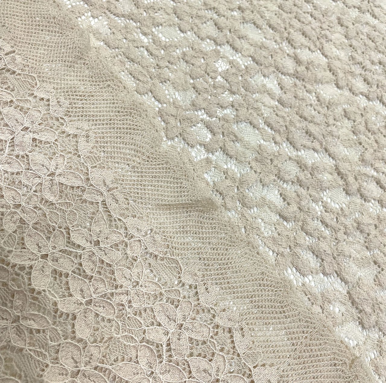 Стрейчевое кружевное полотно имеет очень хорошую растяжимость. Ткань имеет чуть более объемную лицевую сторону. Выткана единым полотном с цветочными мотивами. Хорошо стирается и практически не требует утюжки. Подходит для пошива праздничных нарядов для особых случаев, повседневной одежды, нижнего белья. Так же применяется для отдельных элементов платья.