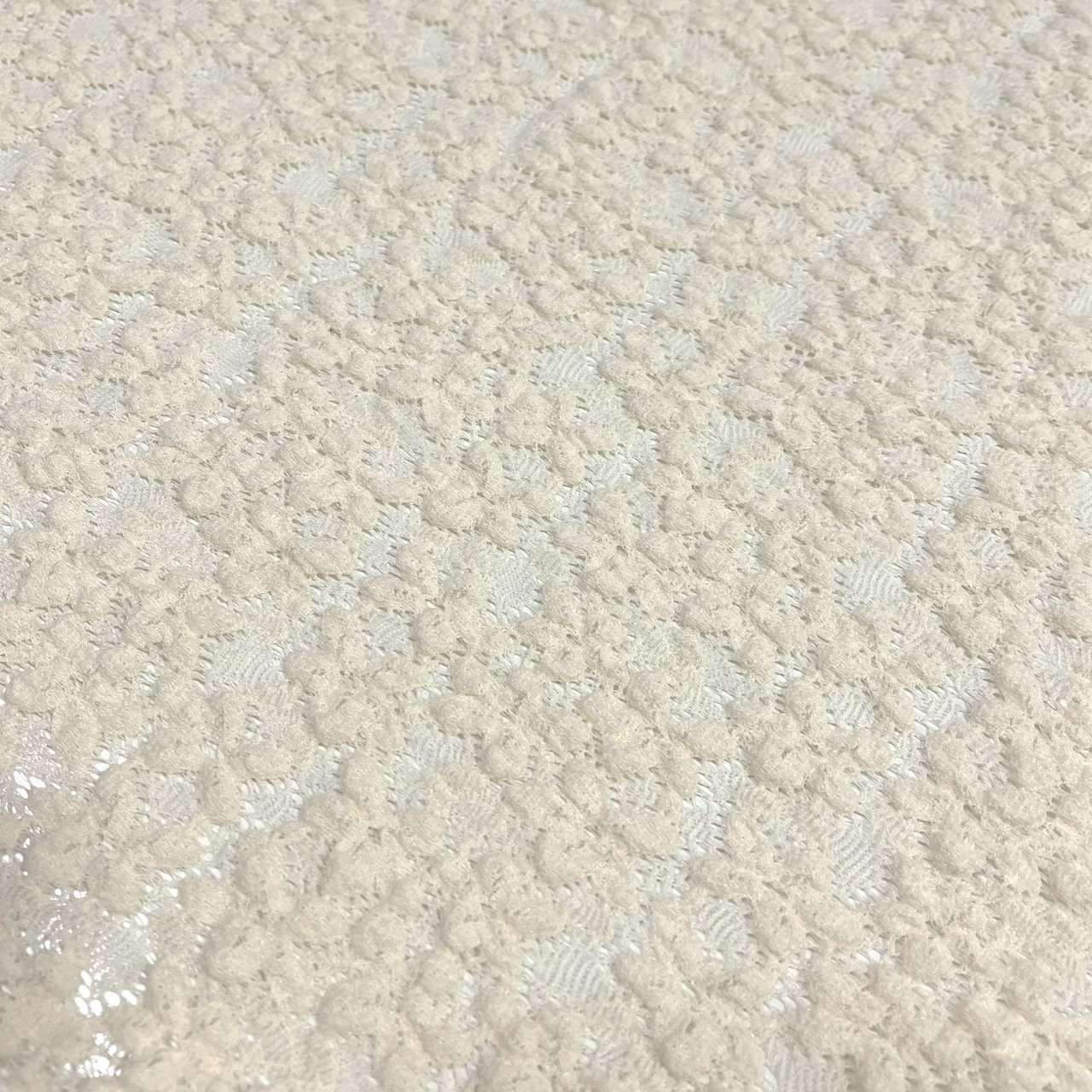 Стрейчевое кружевное полотно имеет очень хорошую растяжимость. Ткань имеет чуть более объемную лицевую сторону. Выткана единым полотном с цветочными мотивами. Хорошо стирается и практически не требует утюжки. Подходит для пошива праздничных нарядов для особых случаев, повседневной одежды, нижнего белья. Так же применяется для отдельных элементов платья.